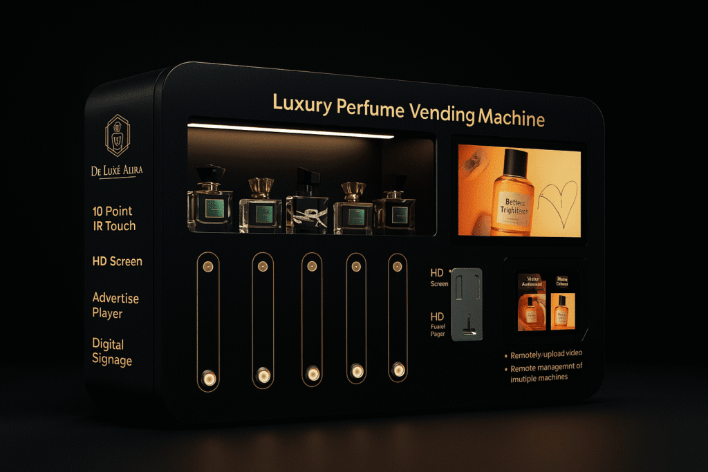 Experience effortless navigation with the responsive 10-point IR touchscreen, making perfume selection smooth and engaging. The vibrant HD display also serves as a powerful digital marketing tool — perfect for showcasing video ads, rotating banners, and promotional visuals to attract customers and enhance brand visibility.